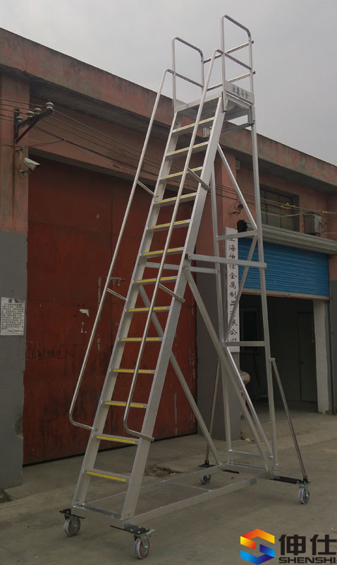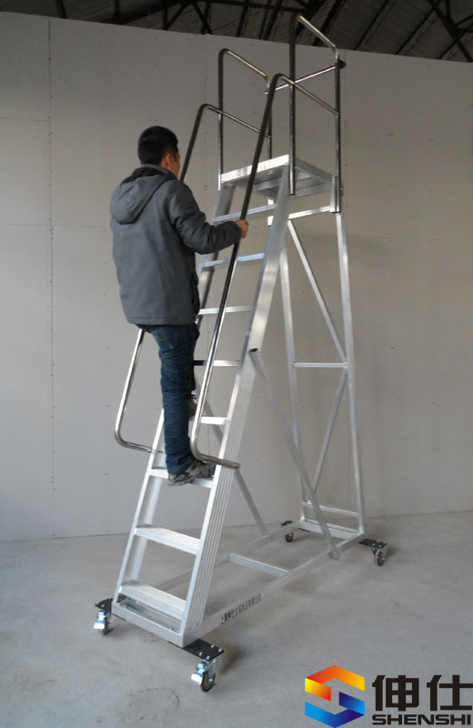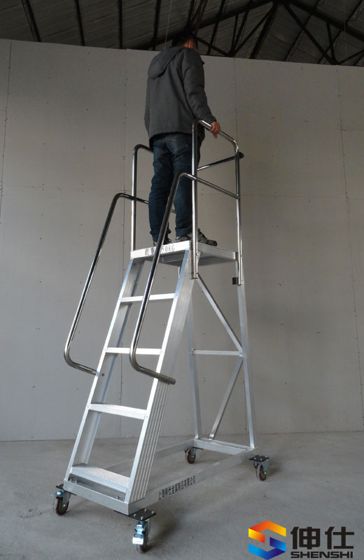 - L指前輪到后輪總長度,W1指登高梯主體寬度,W2指腳輪外裝最大寬度,H1指平臺高度,H2指護(hù)欄高度